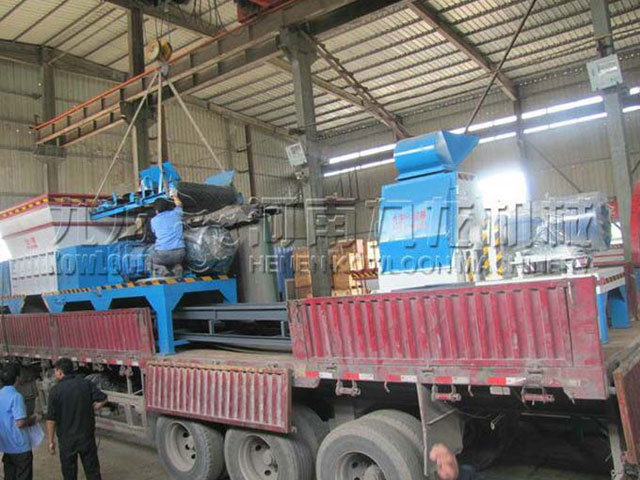 發(fā)往天津的1900撕碎機(jī)和新型木材粉碎機(jī)發(fā)貨現(xiàn)場